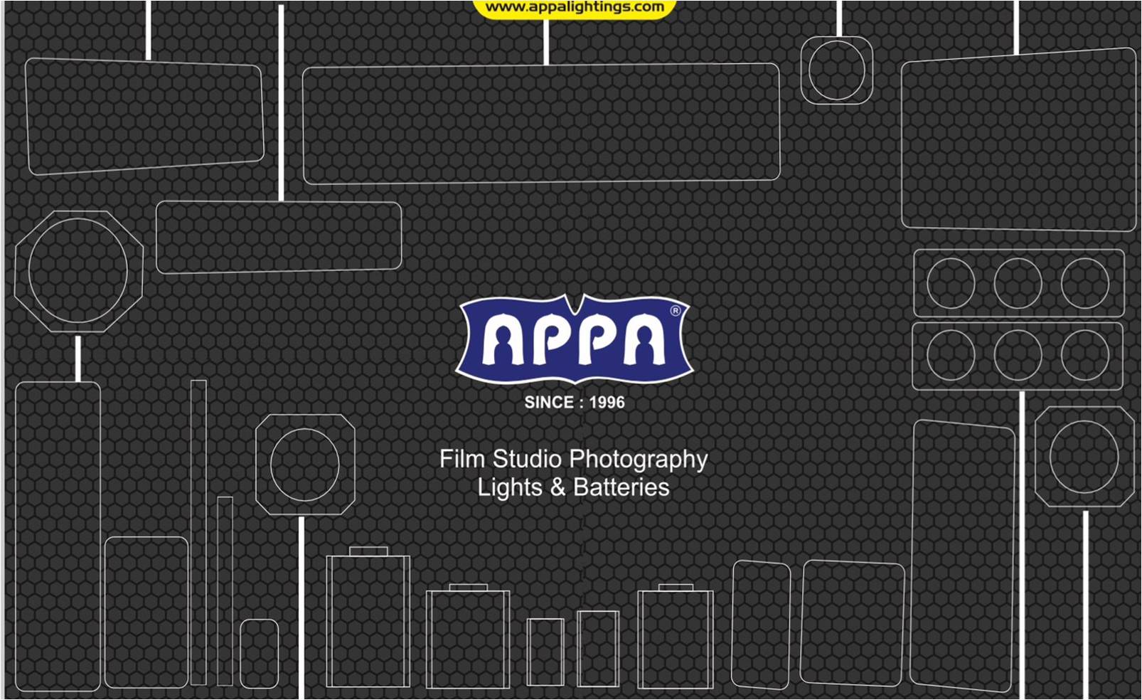 APPA Successfully Completed 25 years, Our Electronics Journey Started in April-1995 Manufacturing of Stabilizers, UPS, in the Year 2000 We Started Film HMI Light Igniters & 4feet 4 & 10 Bank Fluorescent Lights Manufacturing, We Thankfully Acknowledge to South Indian Film Industry For Support, in 2014 We Started Our Own Brand Launching APPA ECO EQUIIPMENTS We Started Film Studio Photography Lights & Batteries Supply to All Over India, Also We Make DOP's Concept Lightings to Supply in Tollywood to Hollywood.